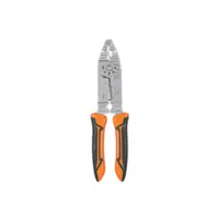 | Descripción | Fabricada en acero con acabado niquelado. Mango cubierto de PVC. Para pelar cables trenzados calibres de 26 a 10 AWG y sólidos de 22 a 8 AWG. Cortador de tornillos. Mordazas para crimpar terminales aisladas y no aisladas. |