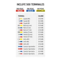 • Incluye un set de 500 terminales con aislamiento, proporcionando todo lo necesario para comenzar a trabajar de inmediato.
