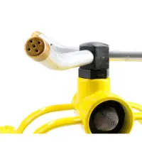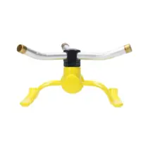 Este aspersor ofrece un alcance ajustable de hasta 10 metros, permitiéndote personalizar el área de riego según tus necesidades. Sus 3 brazos de aluminio con boquillas intercambiables aseguran una distribución homogénea del agua, mientras que su base metálica proporciona estabilidad en cualquier tipo de suelo.