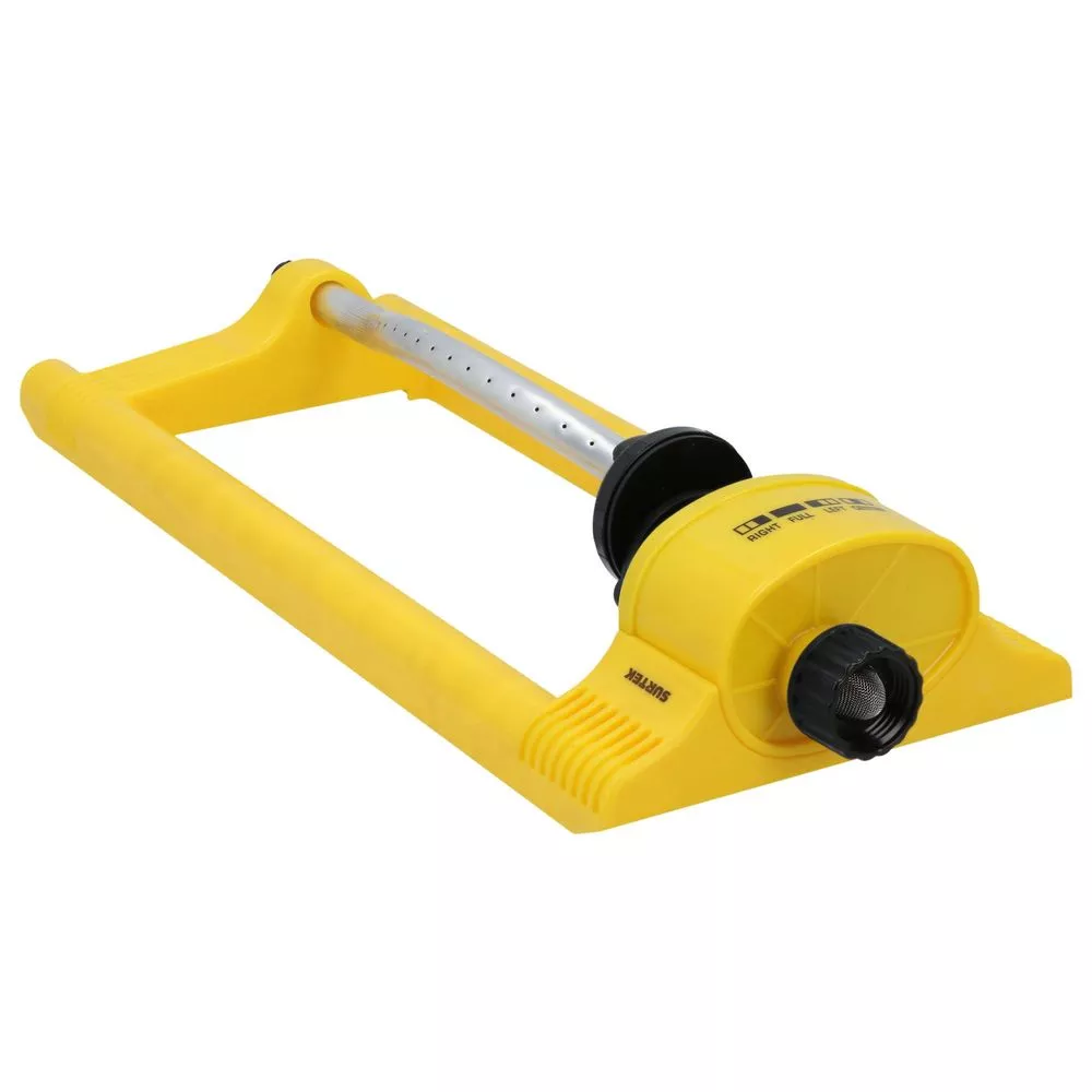 El aspersor oscilatorio Surtek de 18″ es la solución perfecta para regar áreas grandes con precisión. Su barra oscilante con 16 toberas distribuye el agua en un patrón rectangular uniforme, ideal para céspedes extensos o jardines comerciales.