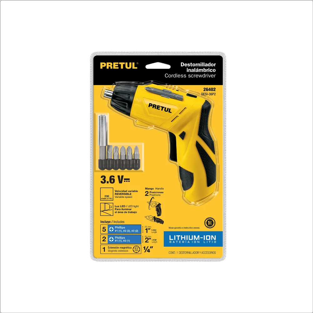 El compañero perfecto para tus proyectos de bricolaje y montaje. Este atornillador compacto de Pretul está diseñado para llegar a esos rincones difíciles donde otras herramientas no caben, haciendo tu trabajo más rápido, sencillo y eficiente.