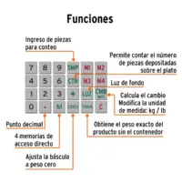 La pantalla de mayor tamaño con dígitos más grandes facilita la lectura, mientras que la función TARA permite obtener el peso neto sin el recipiente. También incluye funciones de conteo de piezas y caja registradora, así como una alarma por sobrepeso para mayor seguridad.