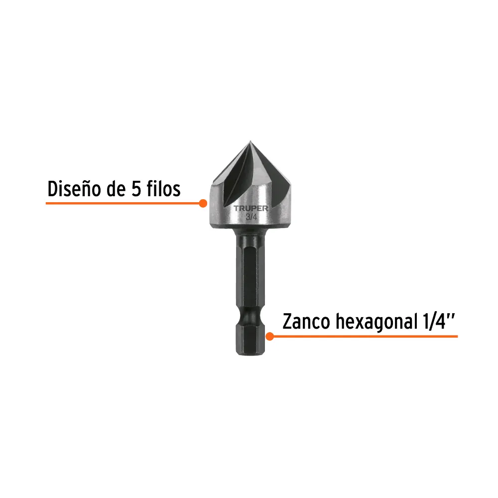 Fabricada en acero de alta velocidad (HSS), garantiza una máxima durabilidad y resistencia al desgaste. Su innovador diseño de 5 filos realiza un corte rápido y un avellanado suave y preciso. El zanco hexagonal permite un cambio rápido y seguro en tu taladro, aumentando tu productividad al eliminar tiempos muertos.