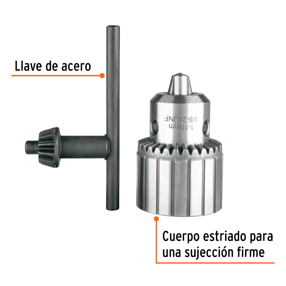 | Características técnicas | Firme sujeción de accesorios con mordazas, Óptimo ajuste con llave para un mejor apriete, Mayor vida útil por sus mordazas y llave de acero |