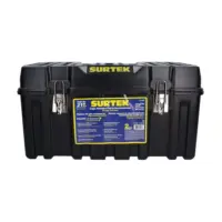 Transporta herramientas pesadas con esta caja plástica Surtek, resistente a químicos y condiciones extremas (-20°C a 70°C). Ideal para mecánicos o constructores que necesitan robustez y versatilidad.