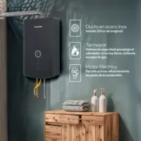 • Requiere conexión a un ducto de evacuación certificado. El tiro forzado exige instalación profesional para evitar fugas de gases tóxicos.