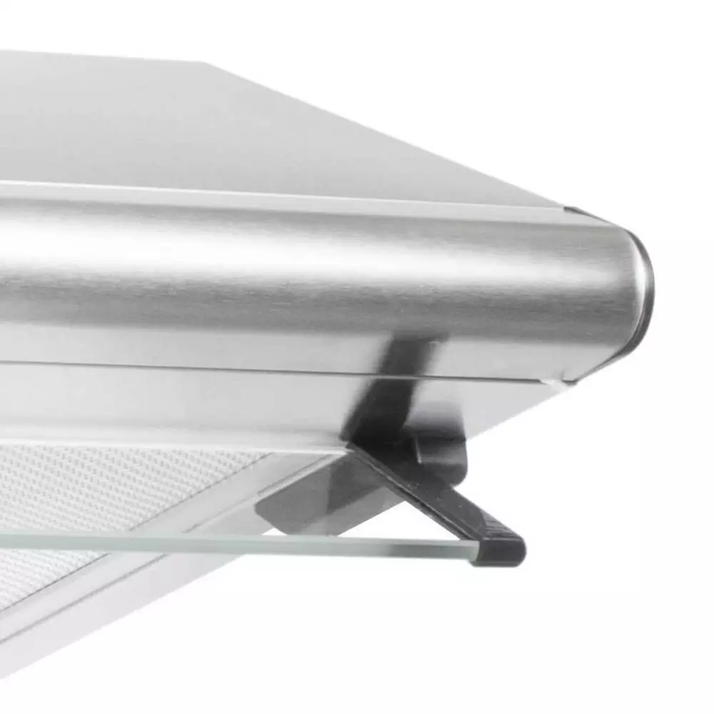 Su visera retráctil con frente en vidrio de seguridad direcciona los vapores, mejorando el rendimiento sin ocupar espacio adicional. La luz LED doble ilumina de forma eficiente la zona de cocción, y su diseño permite instalación posterior en mueble, ideal para cocinas integradas.