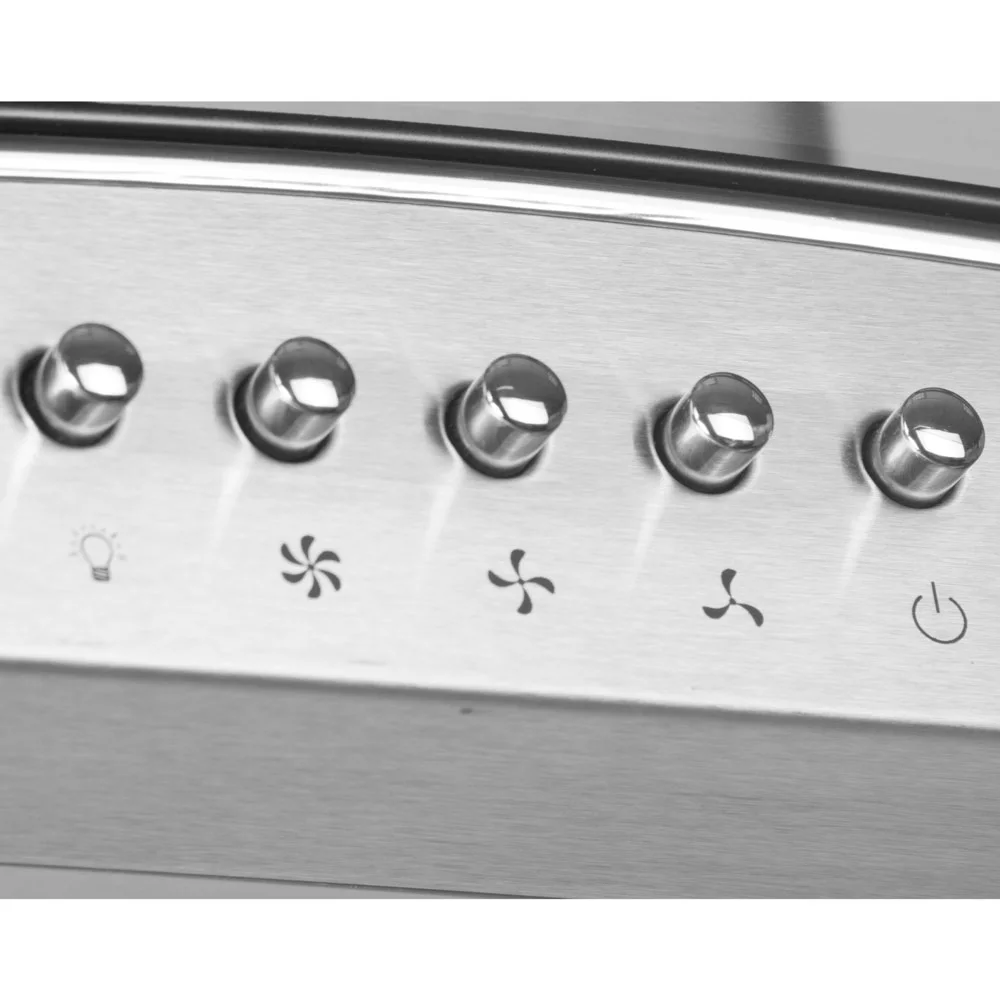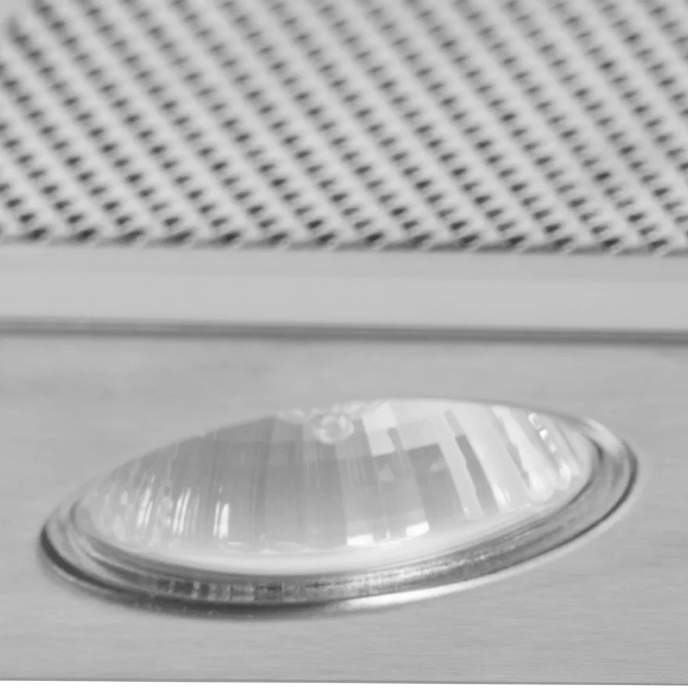 Equipada con dos filtros de aluminio desmontables y filtro de carbón activado, esta campana recirculadora elimina eficientemente los olores y partículas de grasa. El motor de 3 velocidades con controles frontales independientes te permite ajustar su potencia según tus necesidades.