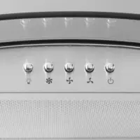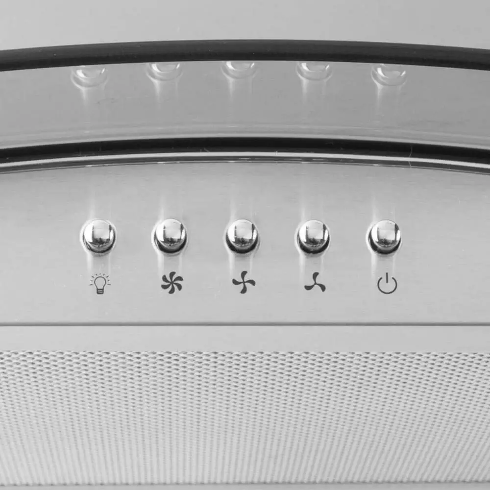 El ducto decorativo en acero y el vidrio templado no solo añaden estilo, sino también durabilidad. Su luz interior halógena doble mejora la visibilidad al cocinar, mientras su diseño permite acceso rápido al interior para tareas de limpieza.