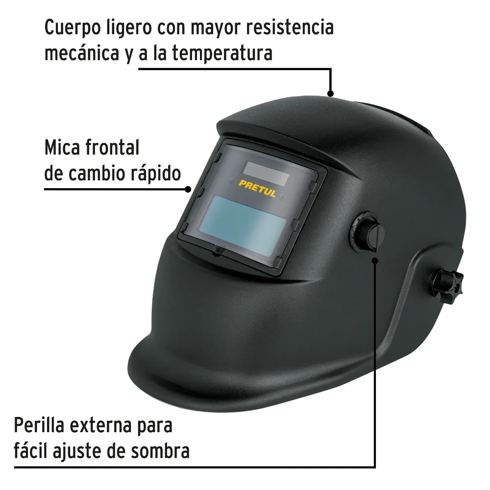 Protege tu visión y mejora tu precisión con la careta electrónica de soldar Pretul. Diseñada para ofrecerte máxima claridad y comodidad en cada proyecto, esta careta se activa al instante para oscurecerse automáticamente, protegiendo tus ojos de chispas y destellos intensos sin interrumpir tu trabajo.