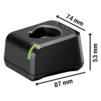 Con tiempos de carga rápidos, este cargador completa la carga de una batería de 2.0 Ah en solo 50-65 minutos y una de 4.0 Ah en 96-125 minutos. Su construcción en poliamida, metal y elastómero asegura durabilidad, incluso en entornos exigentes.