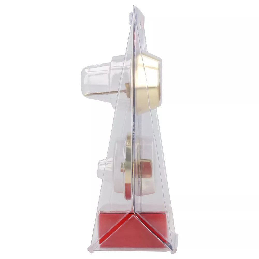 Con acabado brillante y construcción en latón, combina elegancia con resistencia a la oxidación. Su cilindro de 5 pernos y llaves estándar garantizan seguridad básica para espacios privados.