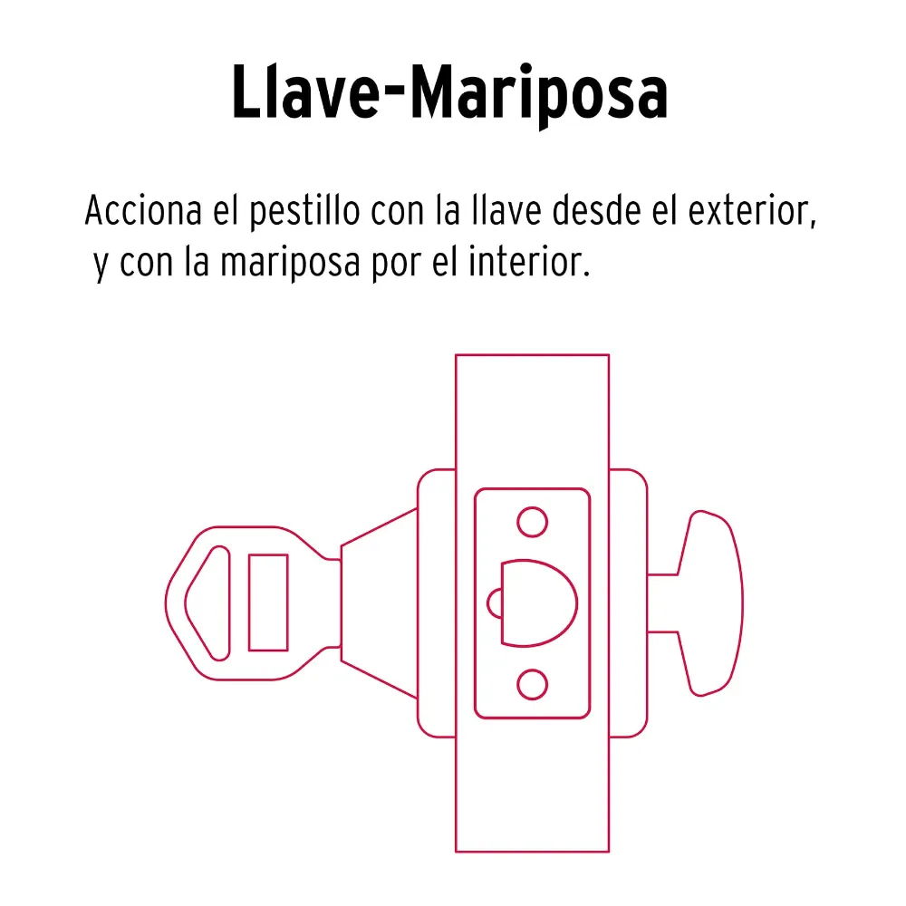 Incluye dos llaves tradicionales de acero niquelado, permitiéndote hacer duplicados fácilmente si lo necesitas. Combina la seguridad de una cerradura con llave al exterior con la practicidad de una mariposa al interior para una apertura rápida sin necesidad de llave.