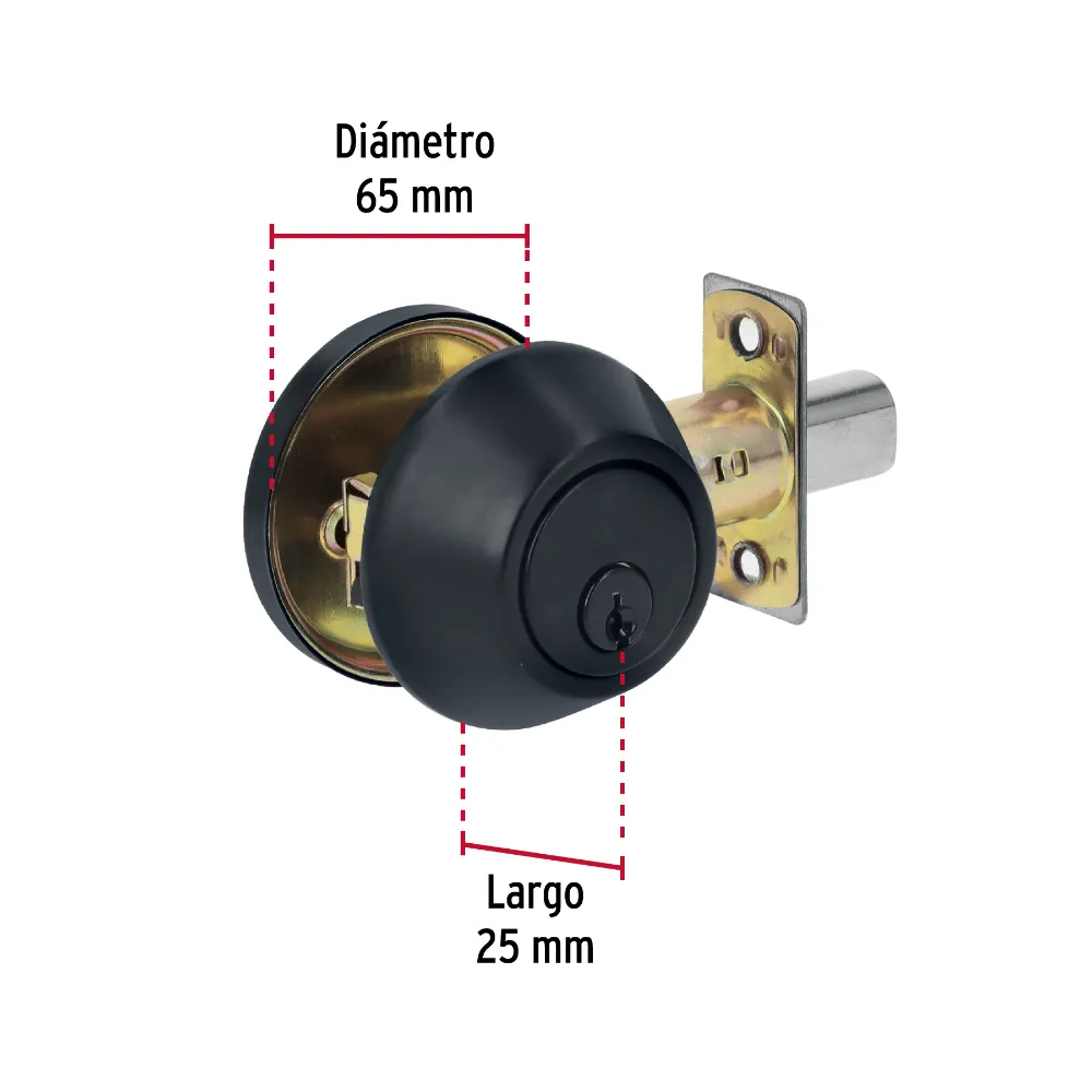 Fabricado con un cilindro metálico y un escudo de acero con acabado negro resistente, este cerrojo está construido para durar. Soporta hasta 100,000 ciclos de apertura y cierre, garantizando un rendimiento confiable durante años. Su instalación es universal, apta para puertas derechas o izquierdas de 1-1/4″ a 1-3/4″ de espesor.