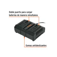 • Cargador Dual con doble puerto para cargar 2 baterías simultáneamente, optimizando tu tiempo de trabajo.