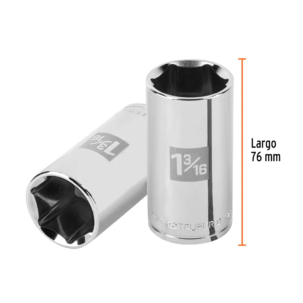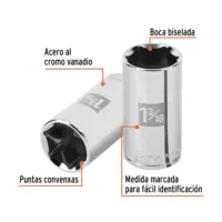 Encuentra la medida correcta al instante gracias a su marcado claro. Su boca biselada permite acoplamientos rápidos y seguros, ahorrándote tiempo valioso en cualquier proyecto. Con un cuadro de 1/2″ y un largo de 76 mm, ofrece el alcance y la fuerza que necesitas para llegar a espacios complicados.