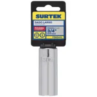 La Copa Larga Cuadro 1/2″ 6 Puntas 3/4″ Surtek está diseñada para ser utilizada en aplicaciones donde el acceso profundo y la resistencia a impactos repetitivos son fundamentales. Hecha de acero al cromo-vanadio, esta herramienta es ideal para trabajos en ejes o componentes de transmisión, permitiendo alcanzar tuercas en zonas profundas o con obstrucciones. Su tratamiento térmico y la superficie anti-desgaste aseguran una mayor durabilidad, mientras que su peso equilibrado reduce la fatiga del usuario durante el uso.