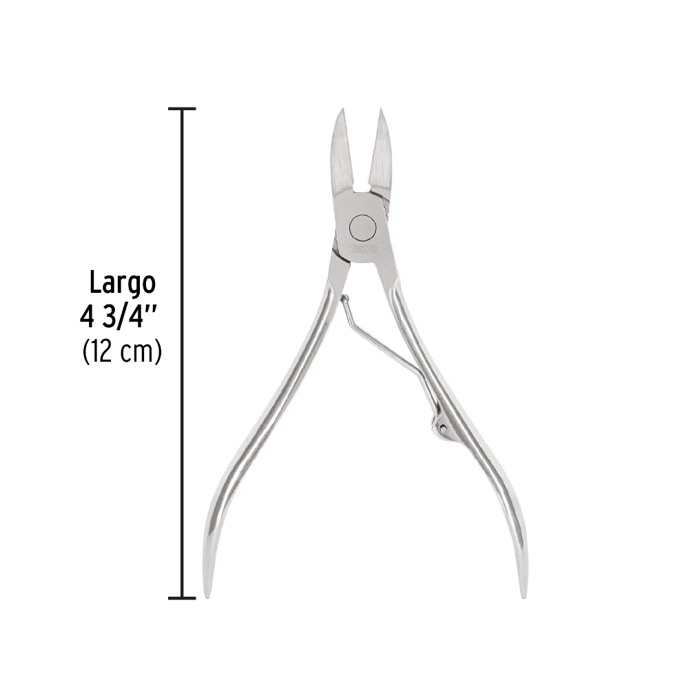 | Características | Forjado en acero inoxidable. Punta extra fina con cabeza curva. Muelle abatible. Facilita el corte de uñas gruesas, cutículas y piel muerta. |