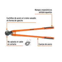 Características Cuchillas de acero al cromo vanadio en forma de gancho para una mejor sujeción, Filo interno pulido para cortes limpios, Mangos ergonómicos antiderrapantes, Mayor palanca para reducir el esfuerzo, No utilice el producto para cortar cable ACSR