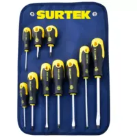 Este juego profesional de 10 destornilladores bimateriales Surtek es ideal para talleres y mantenimiento, combinando confort y resistencia para un trabajo eficiente y seguro.
