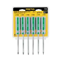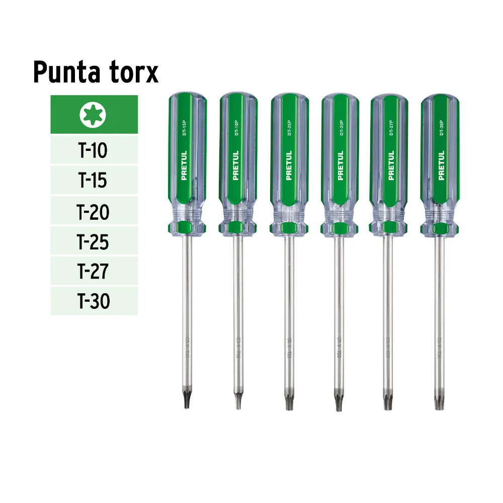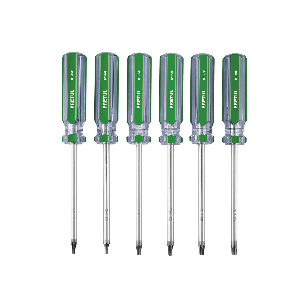Completa tu caja de herramientas con este set de 6 destornilladores Torx de Pretul, diseñados para un desempeño profesional y un agarre cómodo y seguro en todo tipo de trabajos de ensamble y reparación.