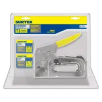 La engrapadora manual Surtek es una herramienta profesional 4 en 1 diseñada para trabajos pesados en madera, cartón y proyectos DIY. Su diseño ergonómico tipo pistola reduce la fatiga, mientras su mecanismo de precisión garantiza resultados impecables en cada uso.