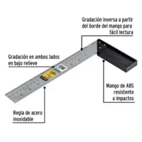 | Características | Regla de acero inoxidable y mango de ABS resistente a impactos, Graduación por ambos lados (sistema métrico y standard) en bajo relieve con tinta negra para mejor visibilidad, Graduación inversa a partir del borde del mango para fácil lectura |