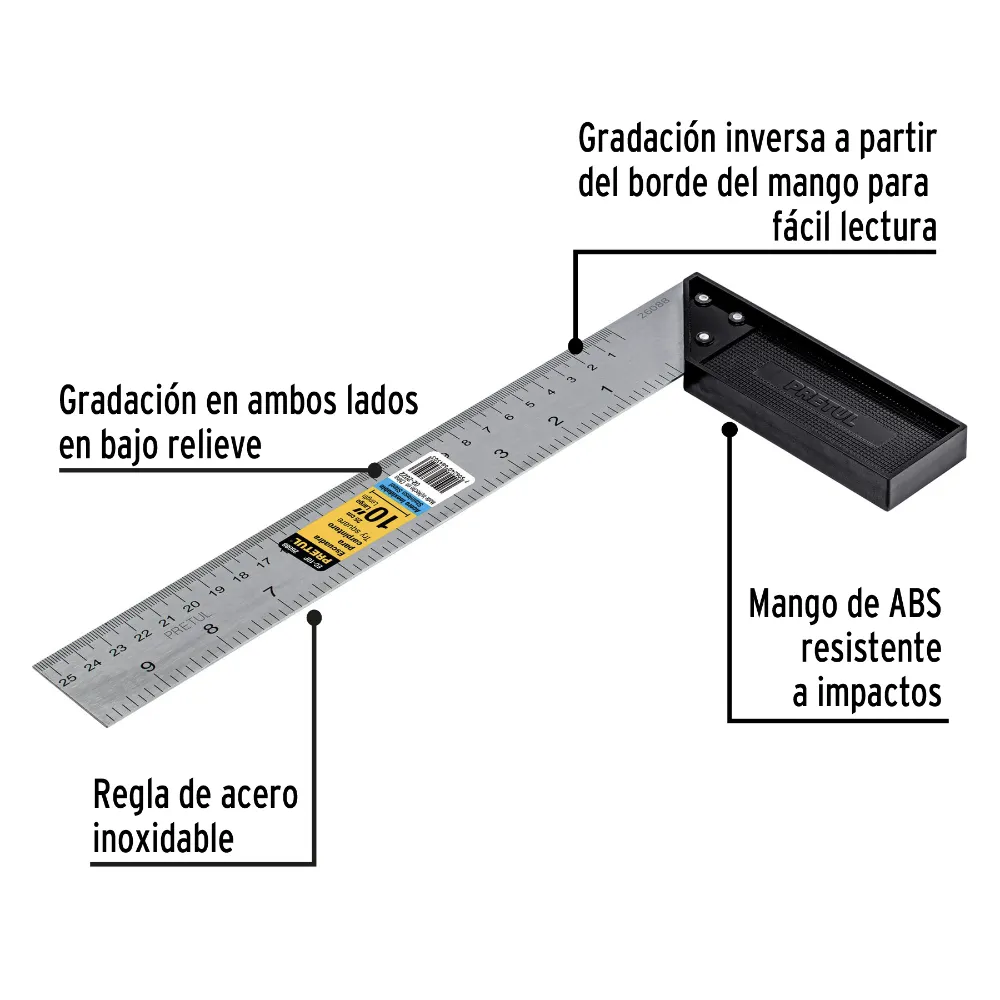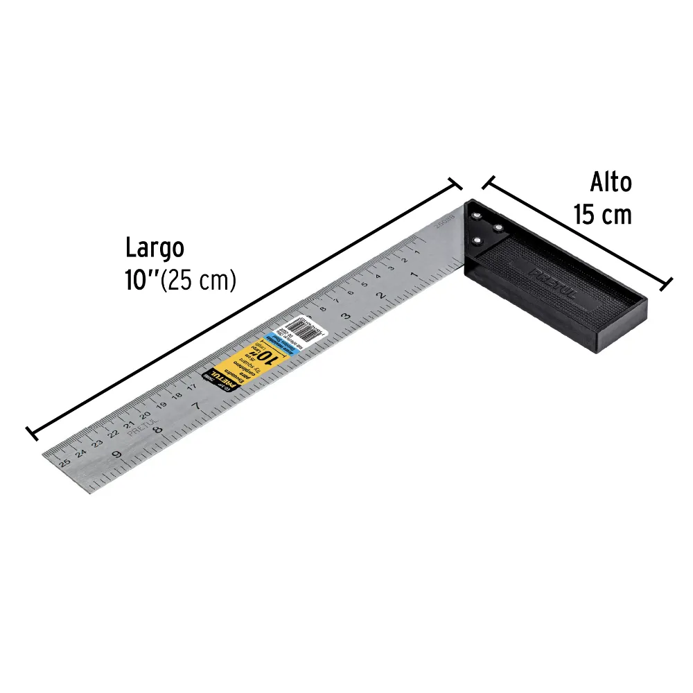 La escuadra perfecta para carpinteros, ebanistas y aficionados al bricolaje que exigen exactitud en cada proyecto. Su diseño robusto y funcional garantiza mediciones perfectas y ángulos de 90° impecables para un trabajo terminado con calidad profesional.