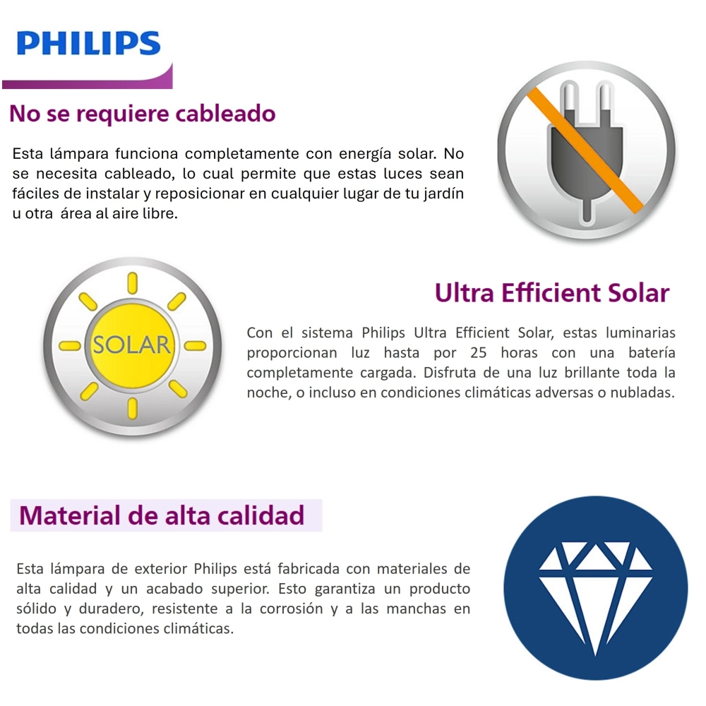 Descubre más sobre la línea solar de Philips en Soelco S.A.S. y consulta información técnica adicional en Philips Lighting.