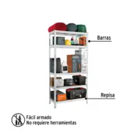 Disfruta de una estructura galvanizada que resiste la oxidación, garantizando durabilidad y larga vida útil. Cada repisa de MDF soporta hasta 35 kg, con una capacidad total de 175 kg, distribuidos uniformemente. Su montaje es fácil y rápido, sin necesidad de tornillos, ahorrándote tiempo y esfuerzo.