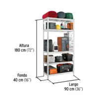 | Características | Estructura metálica con acabado galvanizado resistente a la oxidación, Repisas MDF, Ensamble sin tornillos, fácil y rápido, Ideal para organizar y exhibir artículos optimizando espacio, Producto no incluido |