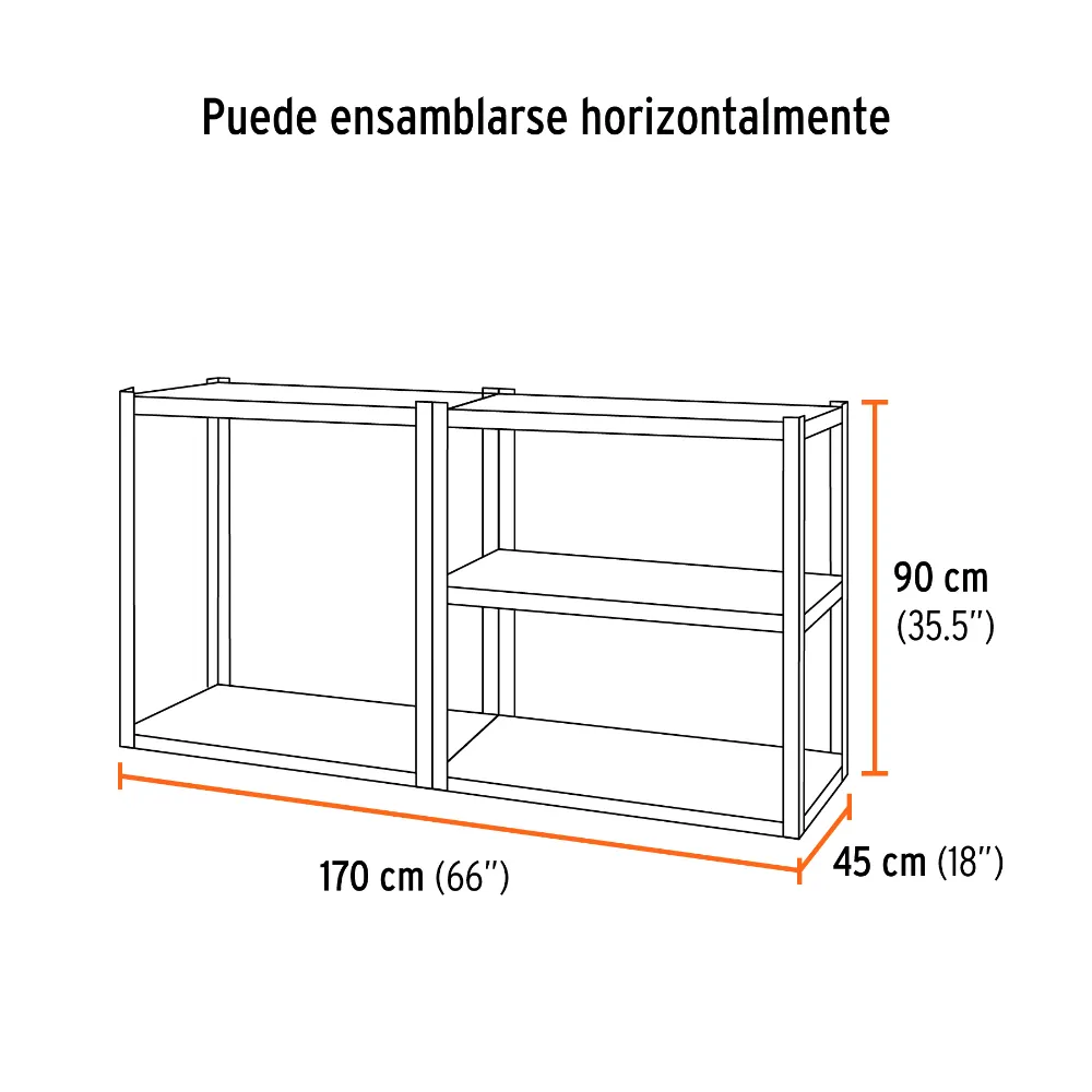 | Características | Estructura y repisas metálicas con acabado en pintura electrostática resistente a la oxidación y rayaduras, Ensamble sin tornillos, fácil y rápido, Pueden ensamblarse horizontalmente, Uso en interiores |