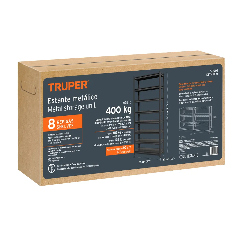 Estante Metálico 8 Repisas Cap. 80 Kg 180x30x85 cm Truper