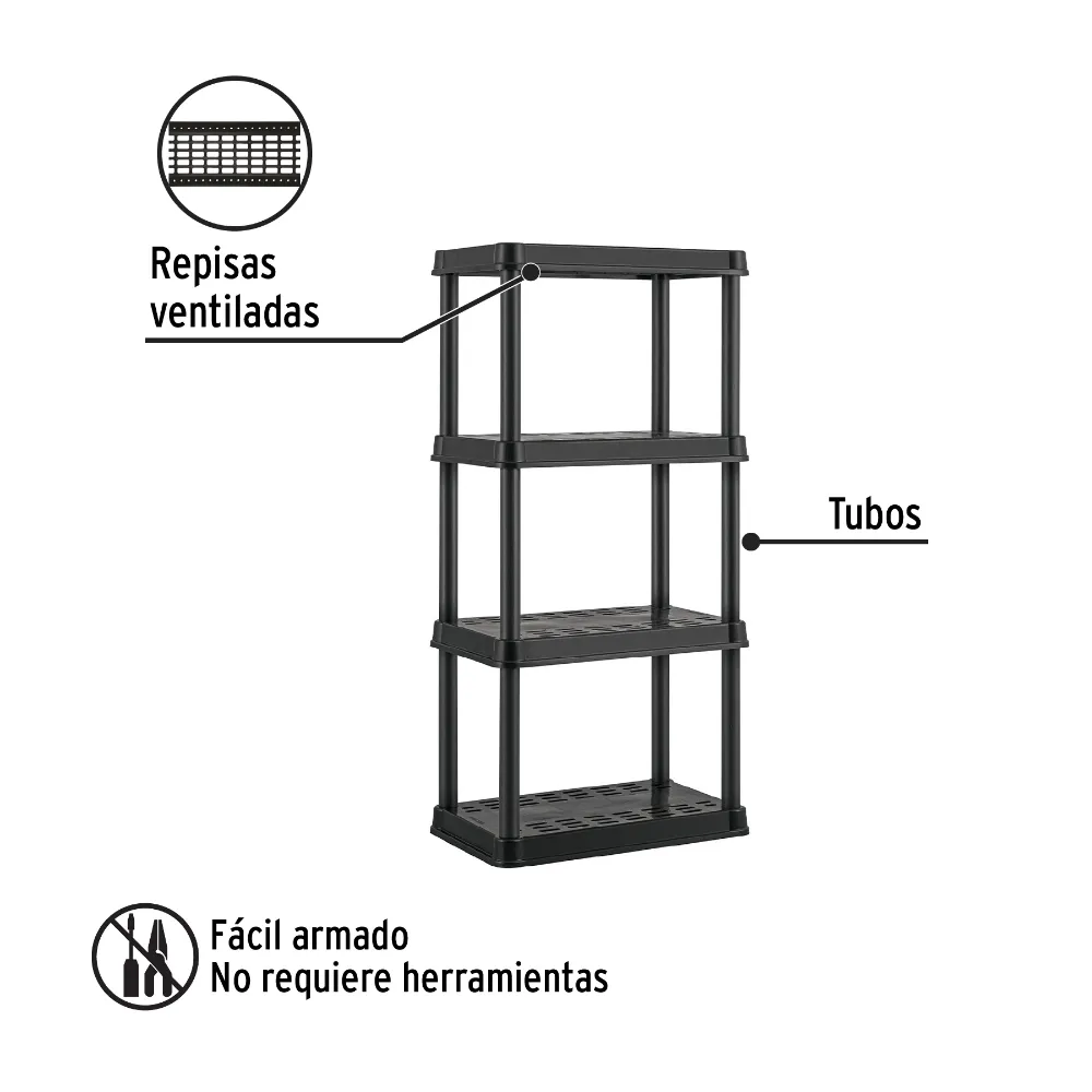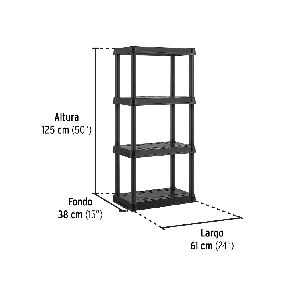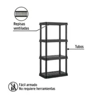 | Características | Fabricado en plástico, Repisas ventiladas para áreas en condiciones de humedad, Fácil instalación. No requiere herramientas para el ensamble, Ideal para organizar y exhibir artículos optimizando espacio |