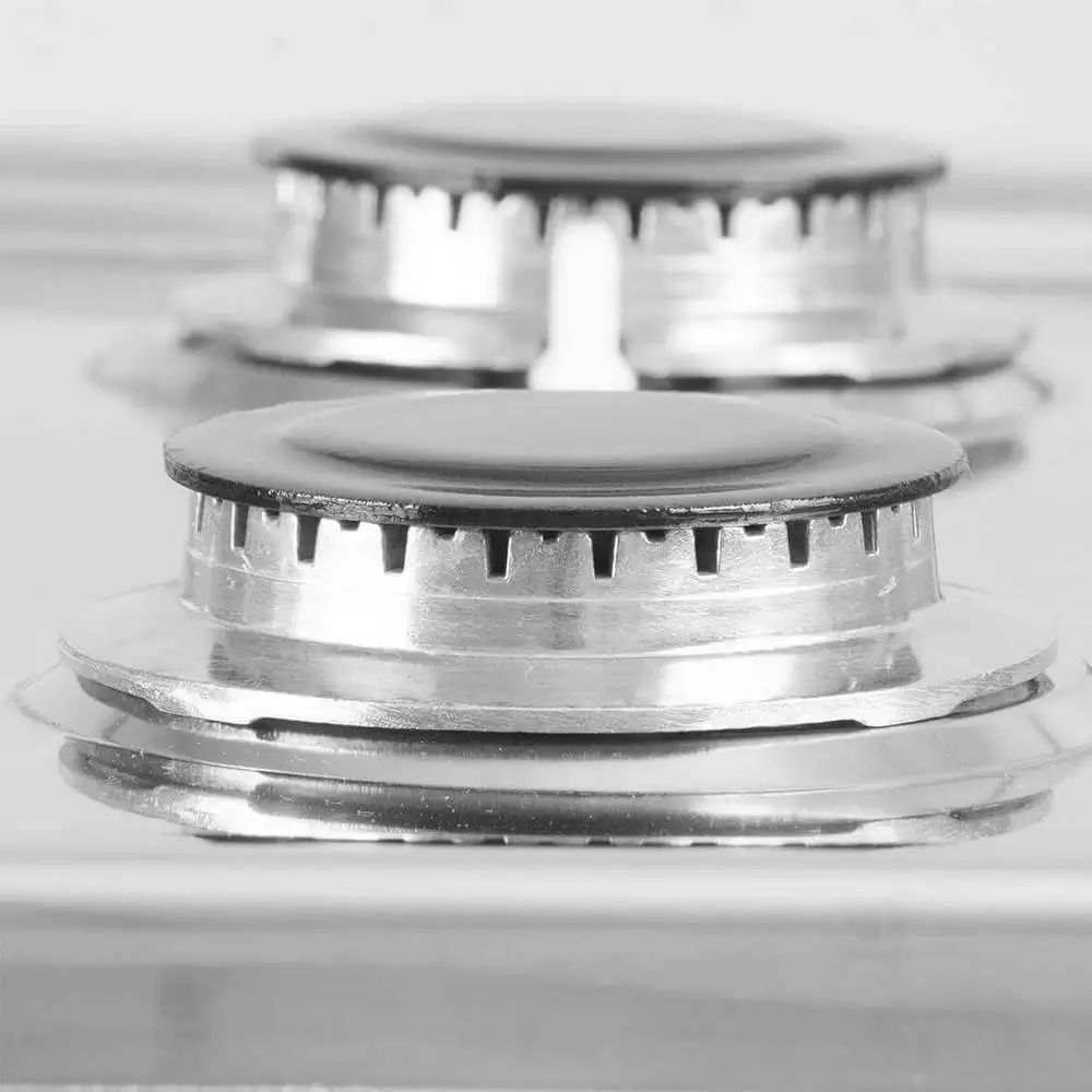 Su mesa plana sellada en acero inoxidable 430 incluye niveles antiderrame, lo que garantiza una limpieza rápida y segura. Cuenta con 4 quemadores (3 rápidos y 1 ultra rápido) y encendido electrónico, ideal para un encendido cómodo y sin fósforos.