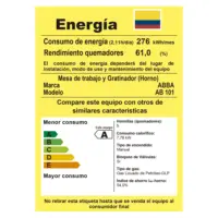 Sistema Venturi para combustión eficiente (276 kWh/mes). Mesa curva antiderrames y parrillas dobles porcelanizadas. Clasificación energética A.