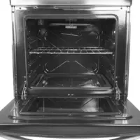 Versión con quemador triple corona y horno operado por termostato. Incluye gratinador de 650W y luz interior (25W) para control preciso de cocciones.
