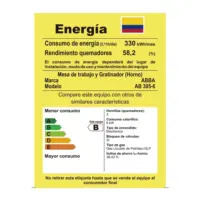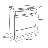 Medidas compactas (60x58x95 cm) con capacidad de horno amplia. Consumo energético clase B (330 kWh/mes) ideal para uso frecuente.
