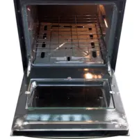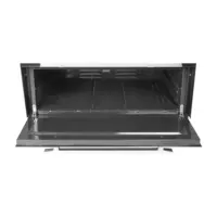 Termostato regulable en horno y sensor térmico en gratinador. Puerta con doble vidrio de seguridad y manijas ergonómicas en acabado cromo.