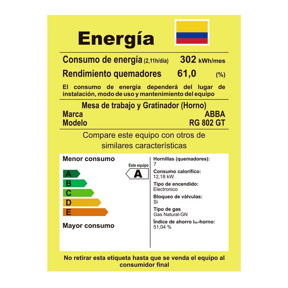Fabricada en Colombia con materiales premium como acero inoxidable y aluminio, esta estufa ofrece durabilidad y eficiencia energética (clasificación B). Funciona con gas natural y energía eléctrica (120V) para mayor versatilidad.