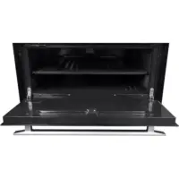 Horno a gas con termostato digital, protección termoeléctrica y luz interior (bombillo 25W). Incluye gratinador eléctrico de 1000W con sensor anti-sobrecalentamiento. Puerta panorámica con doble vidrio de seguridad para monitoreo sin pérdida de calor.