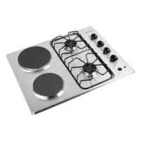 Equipada con dos quemadores rápidos y dos resistencias blindadas (6” y 8”), esta estufa combina la versatilidad del gas natural con la practicidad eléctrica. Su encendido electrónico y perillas ergonómicas ofrecen mayor comodidad y control al cocinar. Además, cuenta con mesa curva sellada y niveles antiderrame, que facilitan una limpieza sin esfuerzo.