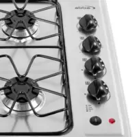 Mesa curva sellada con niveles antiderrame para fácil limpieza. Parrilla doble en alambrón porcelanizado. Perillas ergonómicas. Quemadores con base en aluminio y tapas en acero porcelanizado, operados por válvulas de seguridad. Sistema de combustión tipo copa. Luz piloto que indica el funcionamiento de la cubierta. |