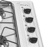 Su mesa en acero inoxidable 430 con niveles antiderrame facilita la limpieza diaria y añade durabilidad. Las parrillas dobles en alambrón porcelanizado aseguran una cocción estable, mientras que las perillas ergonómicas con aplique tipo cromo ofrecen un manejo cómodo y estilizado.