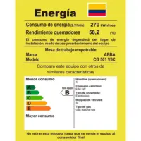 Equipada con 4 quemadores rápidos y 1 ultra rápido, además de un sistema de combustión tipo copa que optimiza el consumo de gas natural. Funciona a 120V/60Hz con clasificación energética B para un balance perfecto entre potencia y eficiencia.