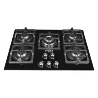 Su mesa sellada en vidrio de seguridad y bandejas porcelanizadas ofrecen máxima durabilidad y fácil limpieza. Las 5 parrillas sencillas en hierro fundido garantizan una distribución uniforme del calor, mientras que las perillas ergonómicas de lujo brindan un control preciso.