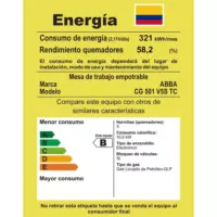 Equipada con 4 quemadores rápidos y 1 triple corona para máxima potencia, además de válvulas de seguridad y sistema de combustión tipo copa que optimiza el consumo de gas propano. Funciona a 120V/60Hz con clasificación energética B.