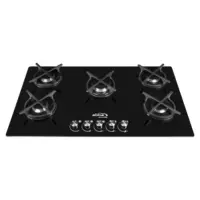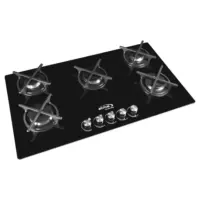 Su mesa sellada en vidrio de seguridad y bandejas porcelanizadas ofrecen máxima durabilidad y fácil limpieza. Las 5 parrillas circulares en hierro fundido garantizan distribución uniforme del calor, mientras que las perillas ergonómicas con aplique en imitación cromo añaden un toque de elegancia.