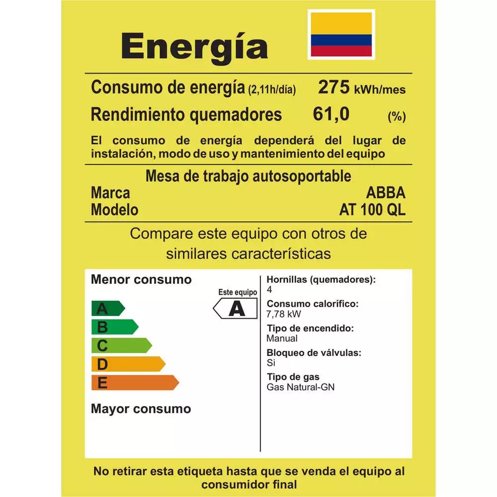 La estufa de piso Abba AT 100-5N G QL combina eficiencia energética, diseño moderno y funcionalidad, convirtiéndose en una excelente opción para tu cocina. Funciona con gas natural y está pensada para un uso diario cómodo y seguro.