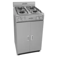 Equipada con mesa plana sellada porcelanizada y niveles antiderrame, permite una limpieza fácil y rápida. Sus cuatro quemadores (3 rápidos y 1 ultra rápido) operan con válvulas de seguridad, brindando potencia y tranquilidad. Además, incorpora dos parrillas superiores dobles y perillas ergonómicas para un uso cómodo.